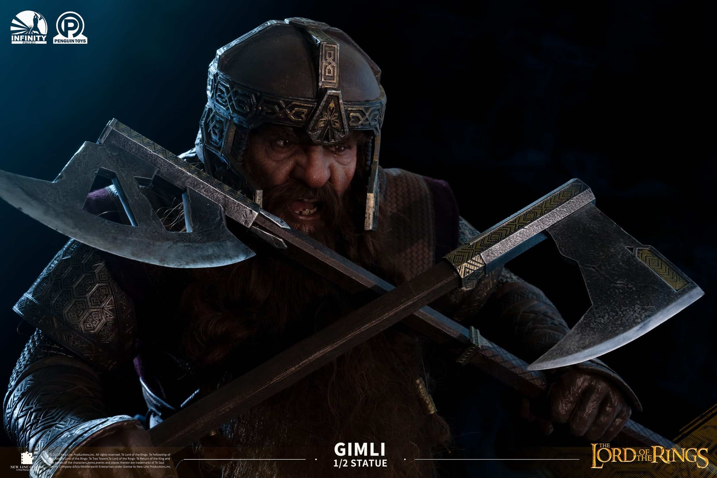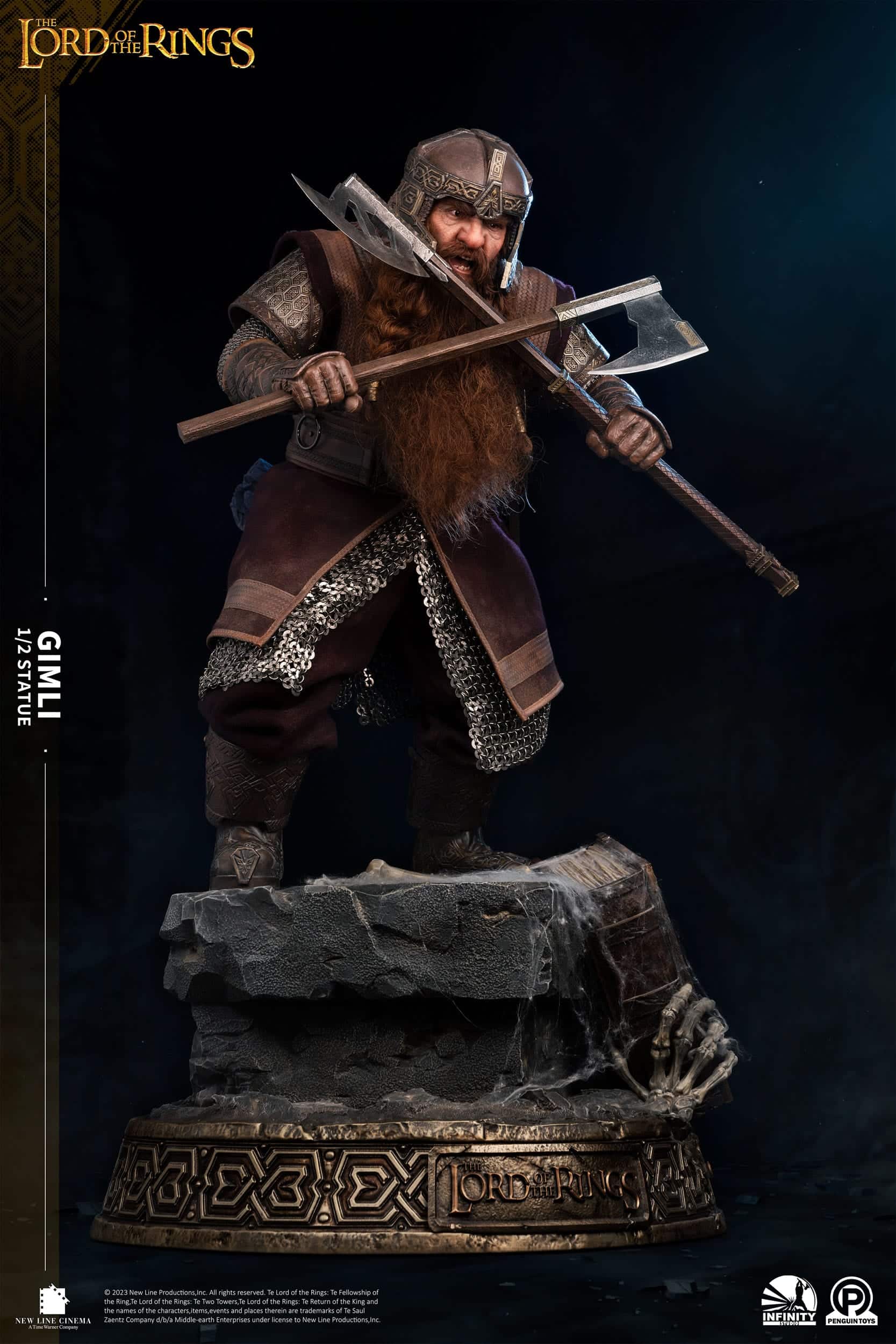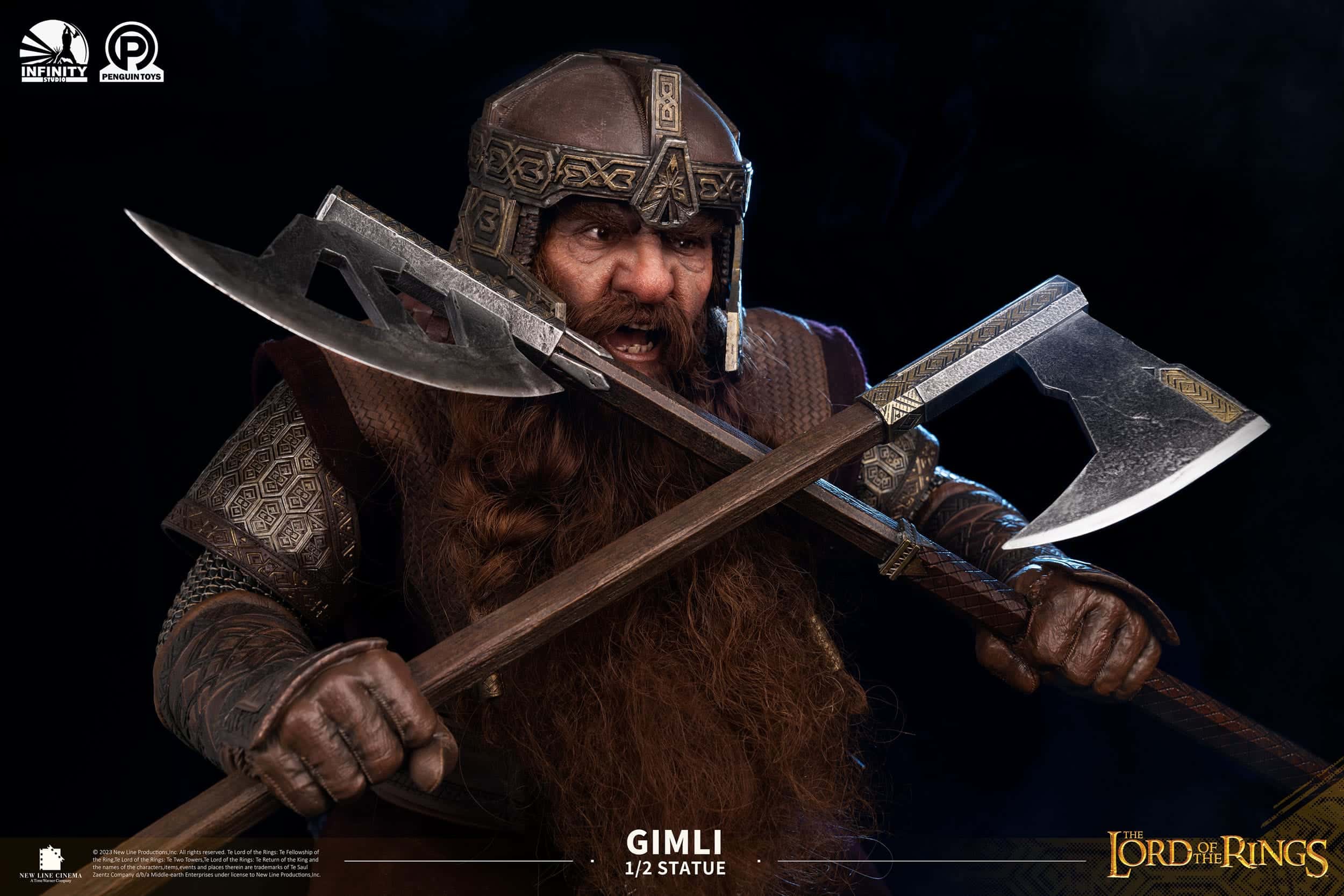 Estatua en escala 1/2 de poliresina de Gimli, tamaño aprox. 88 x 53 x 52 cm. Licencia oficial.