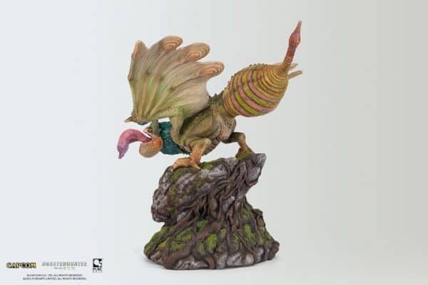 Esta fantástica estatua está meticulosamente esculpida para capturar la esencia del mundo de Monster Hunter. Con unas dimensiones aproximadas de 44,5 x 41 x 41 cm, cada detalle, desde la expresión del Pukei Pukei hasta los elementos de su hábitat, se recrea con precisión en esta escala detallada de 1/26.