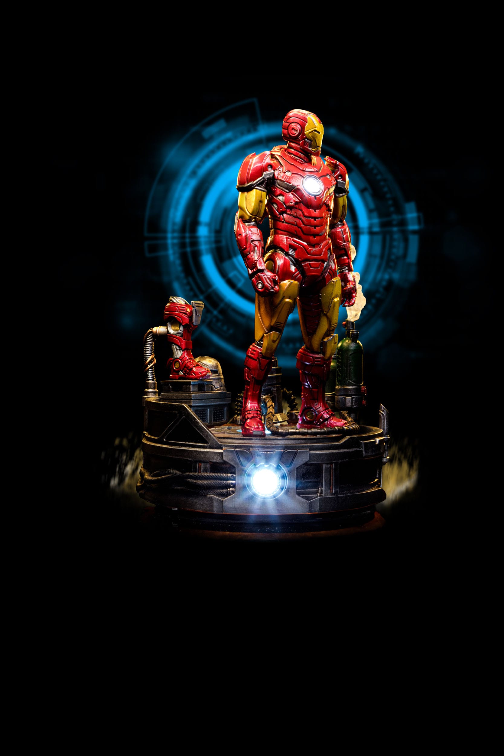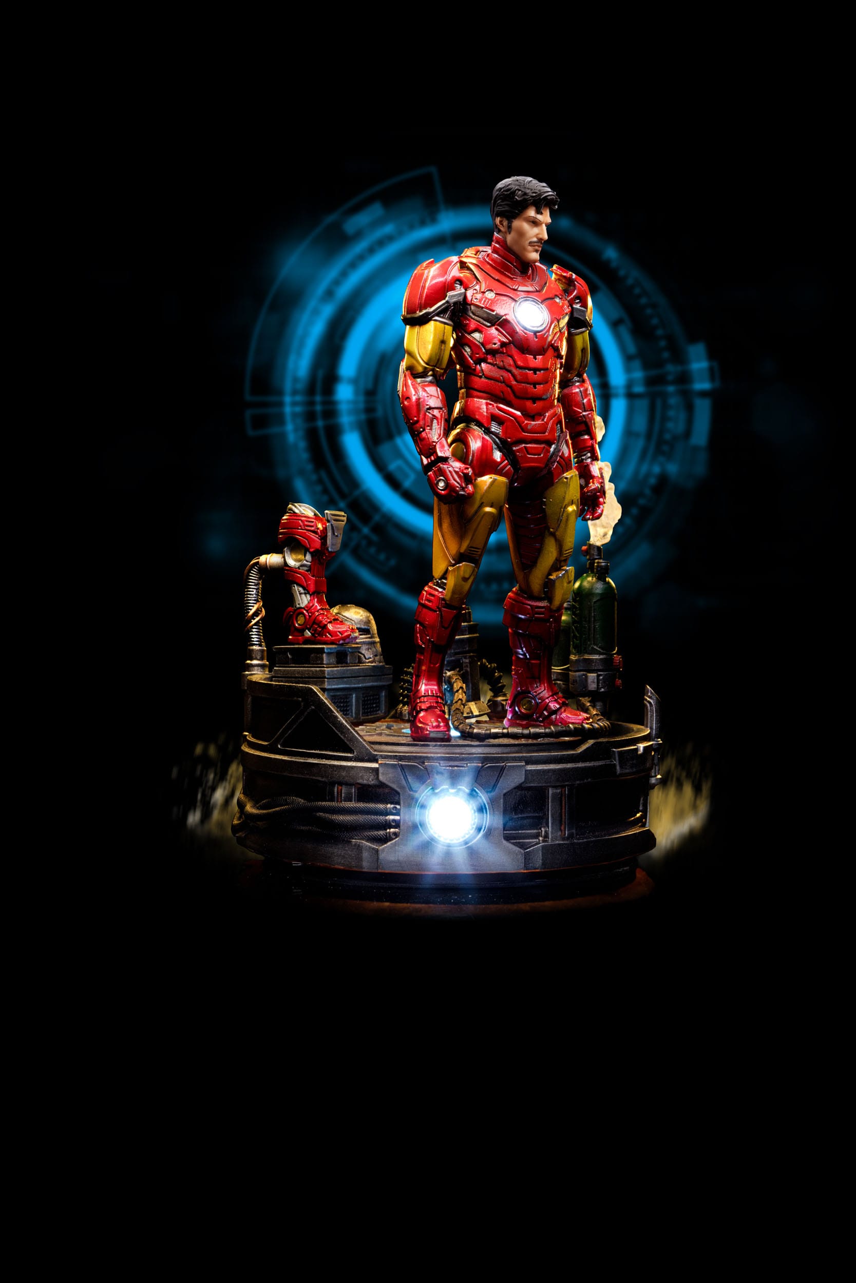 Estatua de poliresina a escala 1/10 de la Iron Man, dimensiones aprox. ca. 23 x 16 x 16 cm. Licencia oficial. Con función de luz LED.