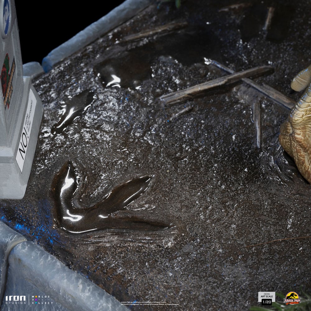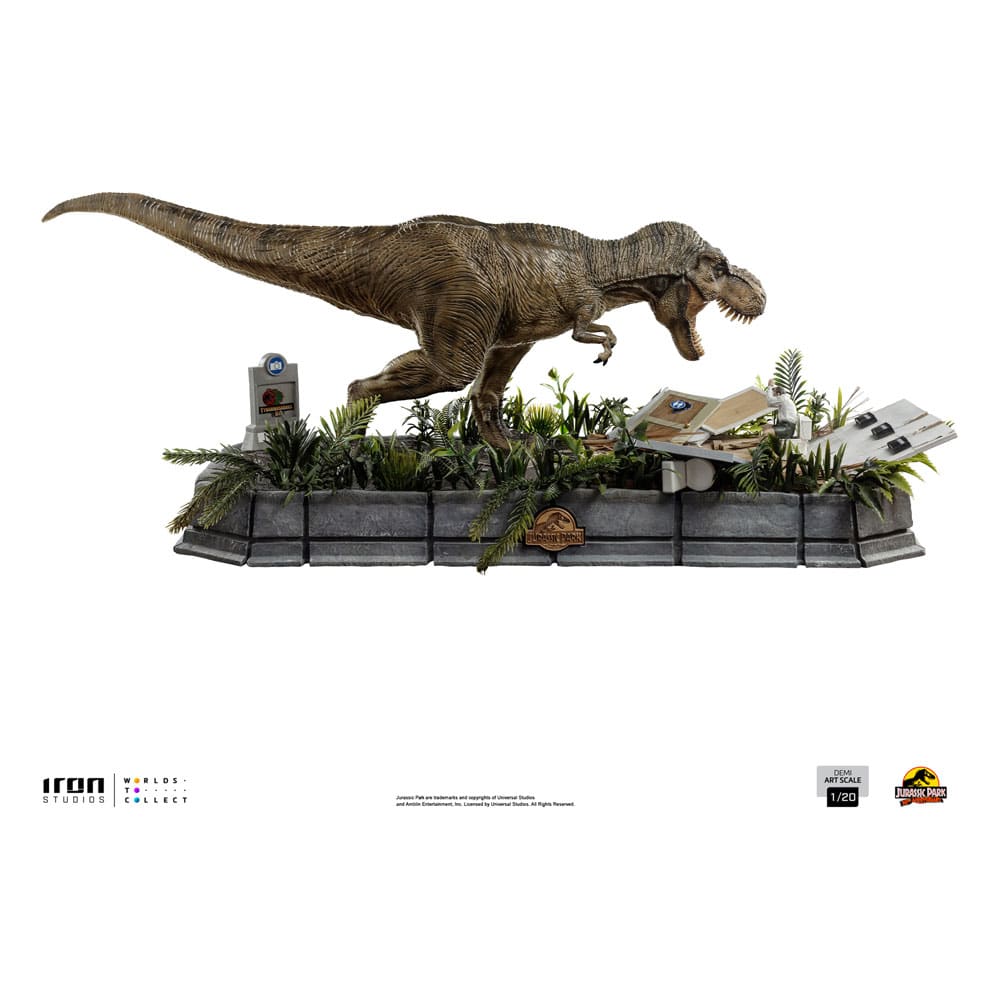 Estatua en escala 1/20 de poliresina de la película «Parque Jurásico», tamaño aprox. 30 x 66 x 28 cm. Licencia oficial.